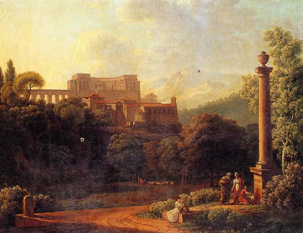 Previous Image Next Image charles-canda-an-italianate-landscape-with-figures-at-a-classical-column-by-a-town
