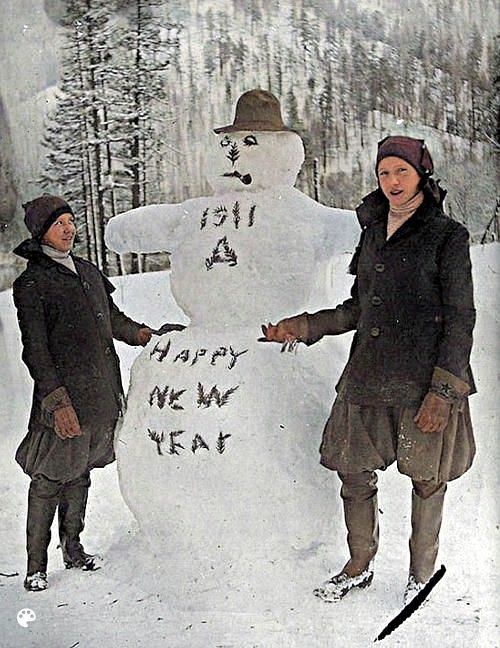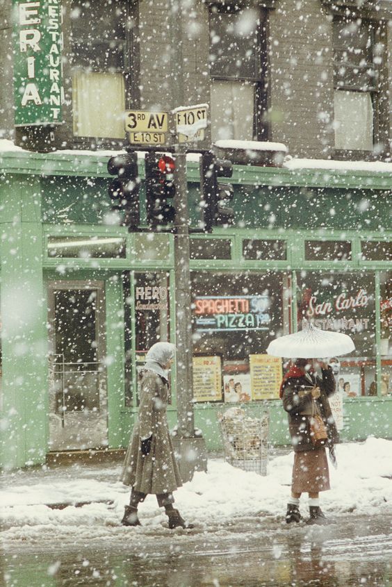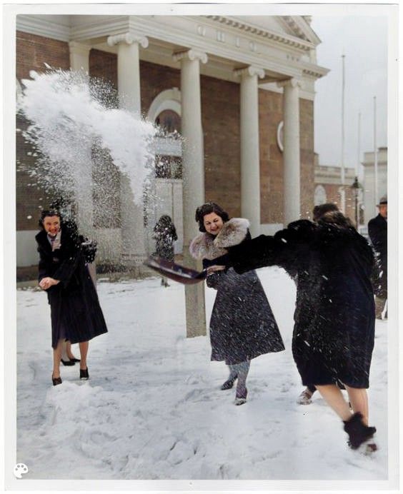 A snowball fight in front of New York Public Library, New York City, 1939.
