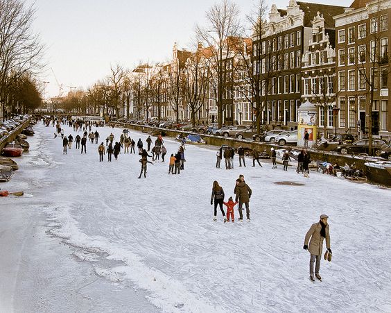 Skating on a frozen canal, Amsterdam, Holland, 1997.