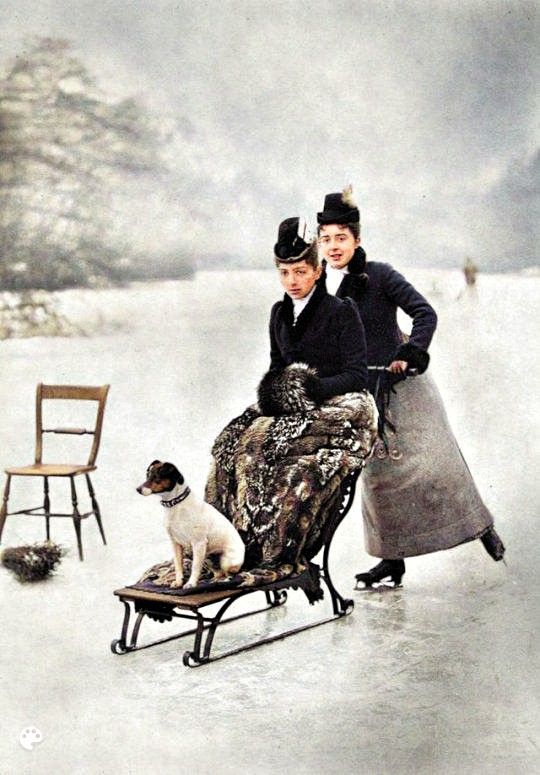 Skating on a frozen pond, 1891. Courtesy British Library.