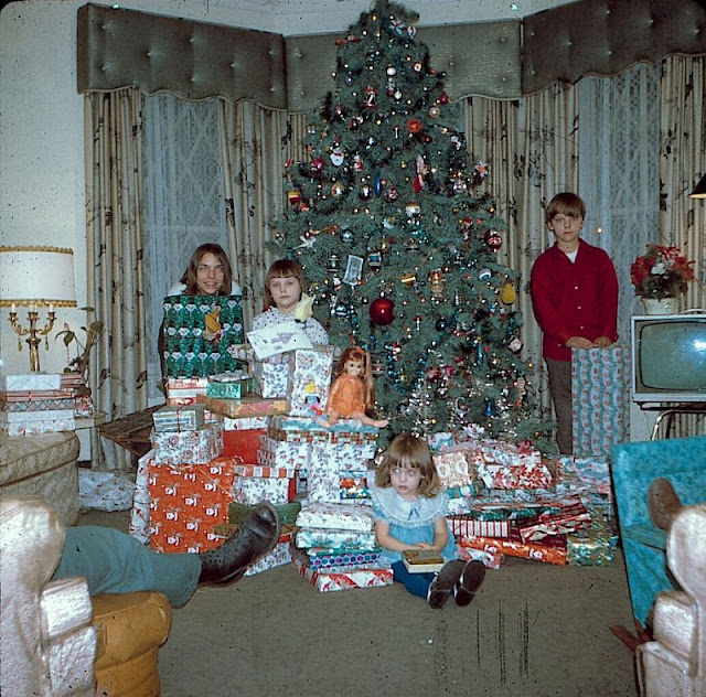 39. Guests arrive on a snowy day, perhaps for Christmas morning, early 1960s.