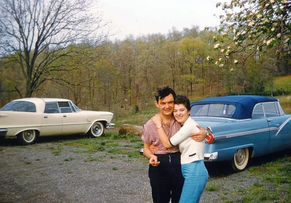 30. Standing awestruck after rolling their 1960 Olds Dynamic 88 four-door sedan through an unknown state’s historic covered bridge.