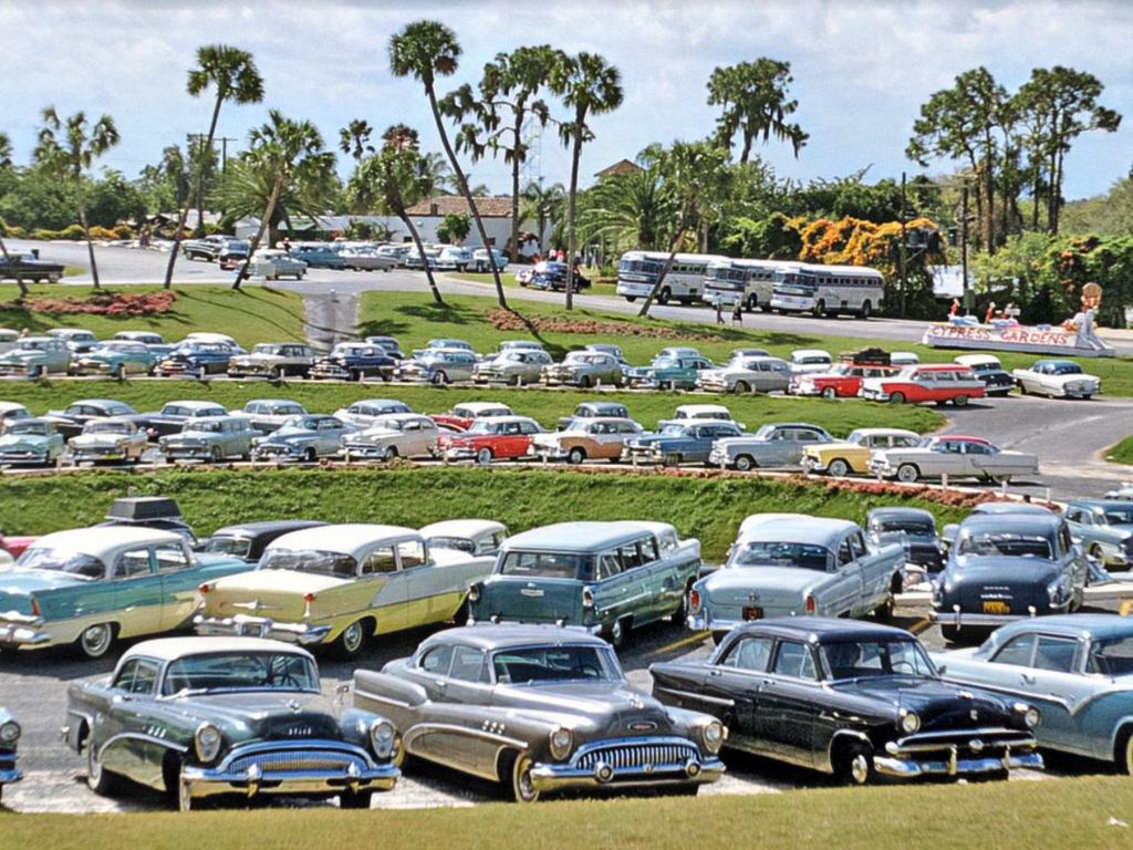 2. There are at least four blue cars in this Cyprus Gardens car park, Winter Haven, Florida, late 1950s.